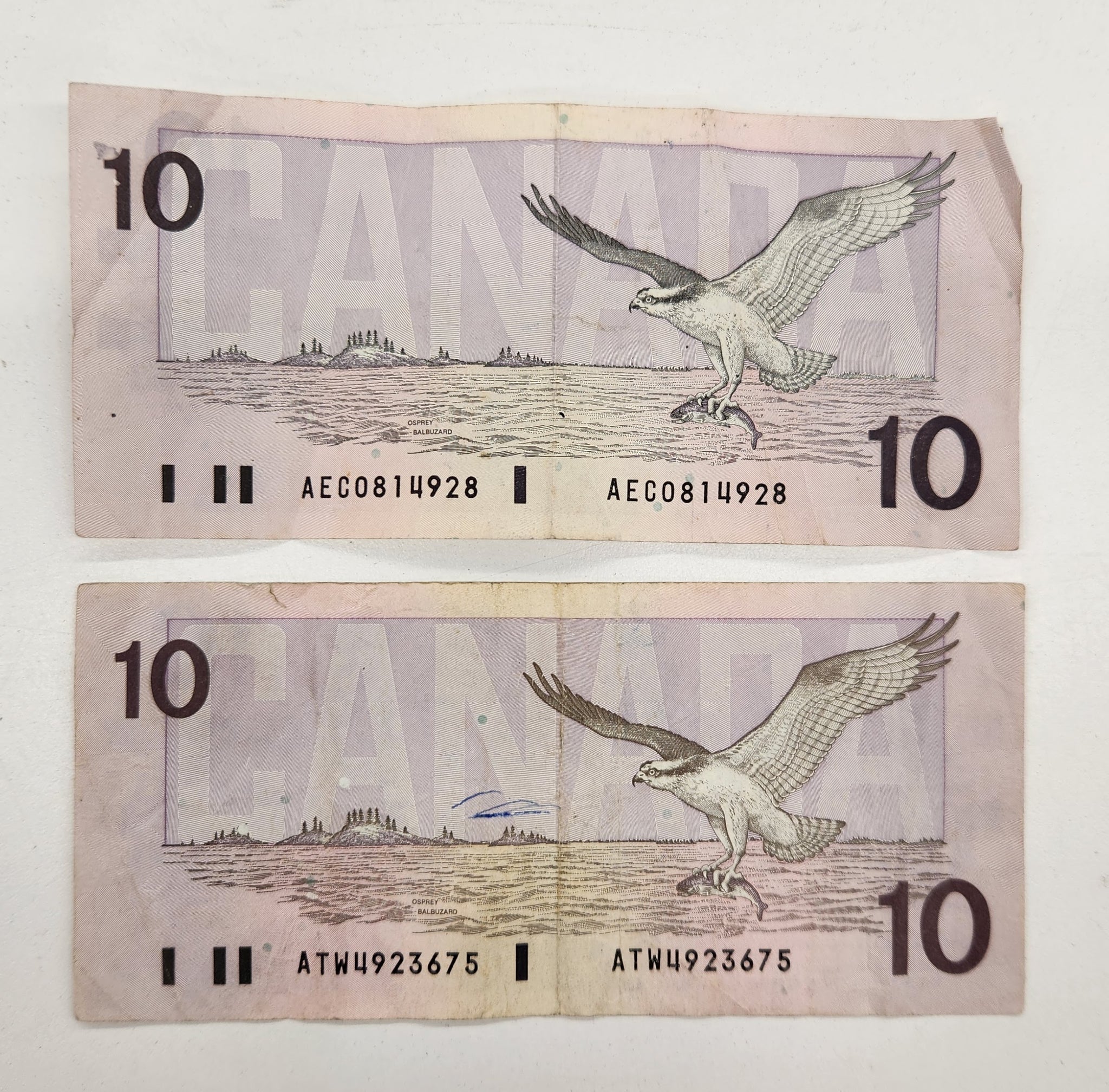 Both bills are well worn - see picture for details.